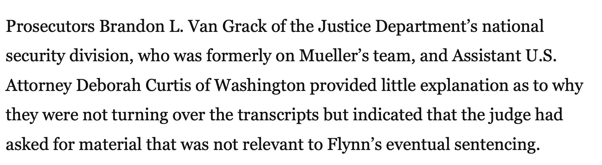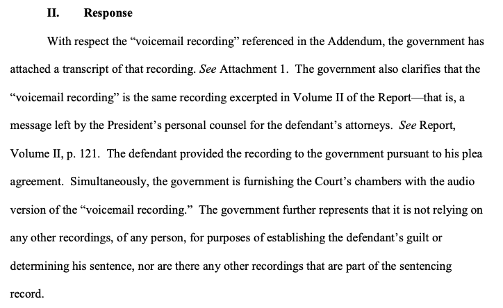 Holy cow, look how carefully the Mueller team worded this response about FBI recordings of Michael Flynn. Notice how they avoid production, by parsing, there are no recordings "that are part of the sentencing record".