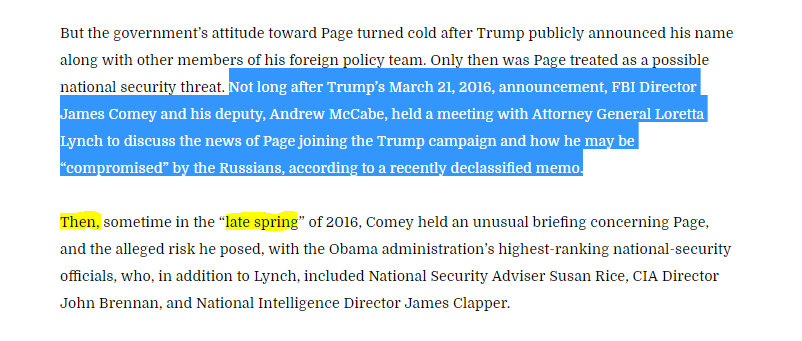 OTOH, Loretta does remember that as soon as Carter Page joined the Trump campaign she started getting briefings from Comey and McCabe--under the bus you go, guys!